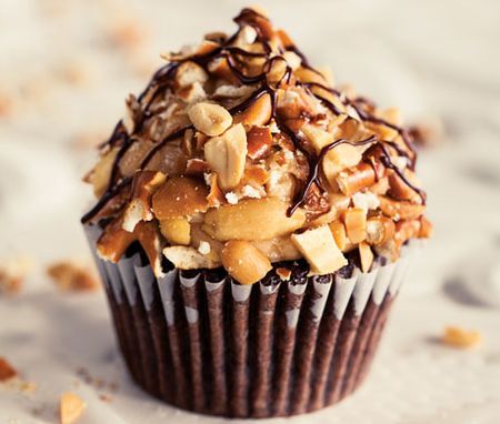 Case in point: This combination of chocolate cupcake, creamy peanut butter frosting, and an avalanche of crunchy peanuts and pretzels hits the spot without breaking a sweat.